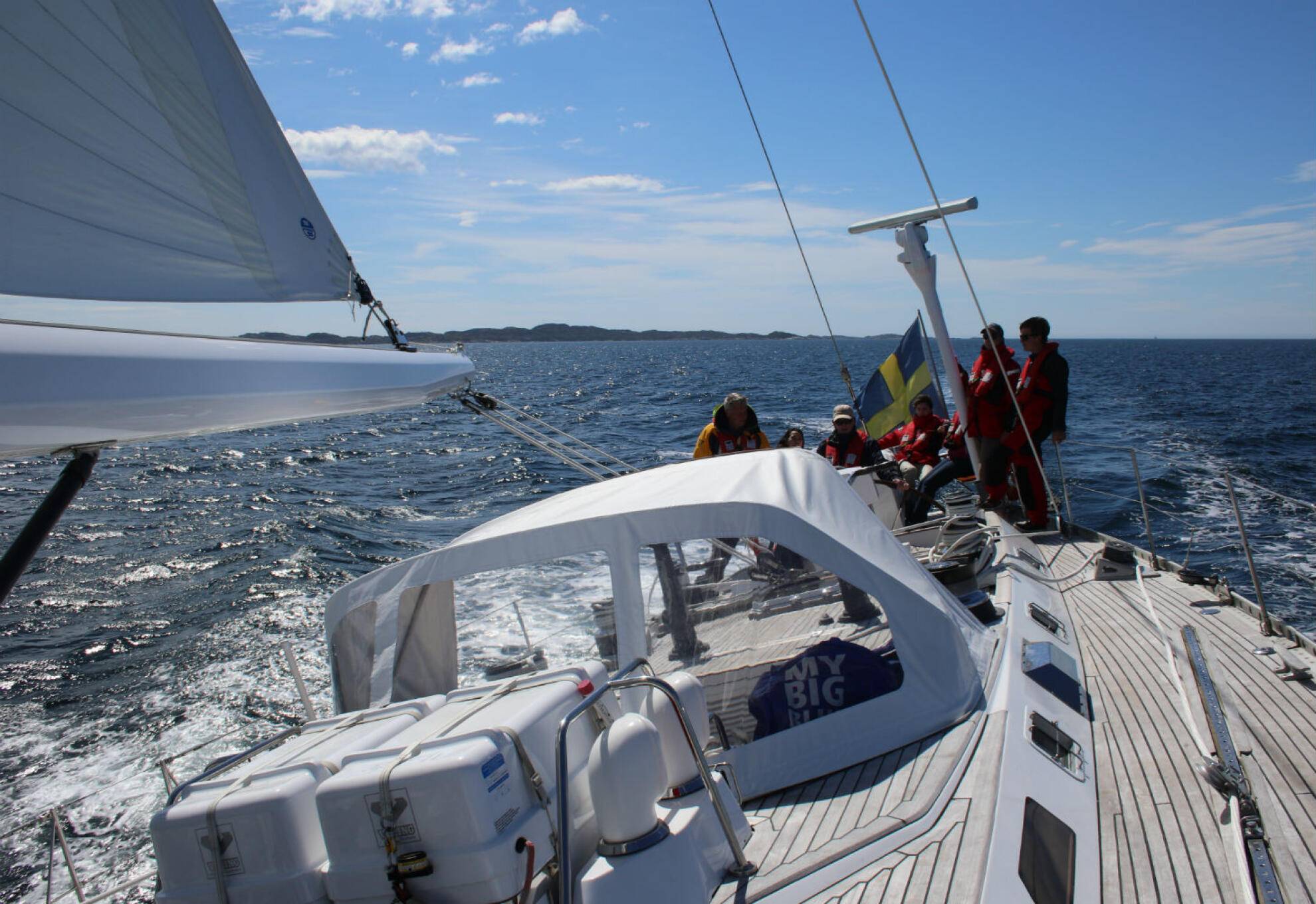 Däcket på S/Y Ichiban är designat för ett antal olika scenarios, hårt väder med vågor som slår över och kommer rullande över däcket, en skön undanvind i skärgårdens lugna vatten medan öar och kobbar glider förbi eller som matsal där trerättersmiddagar ska serveras i kvällssolen. Vid varje tillfälle känner du dig trygg ombord och du förstår varför SWAN båtarna är så välrenomerade.