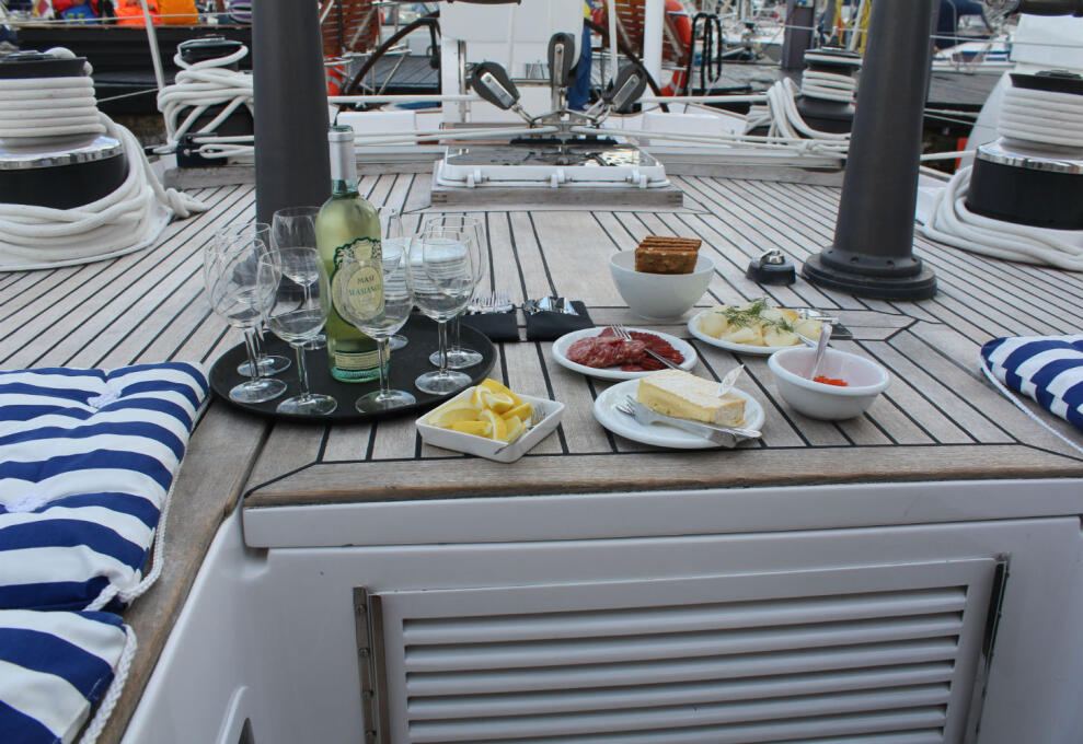 Måltiderna som serveras av kocken är så smakfulla och elegant upplagda att det är svårt att tro att de tillreds i det lilla köket ombord.