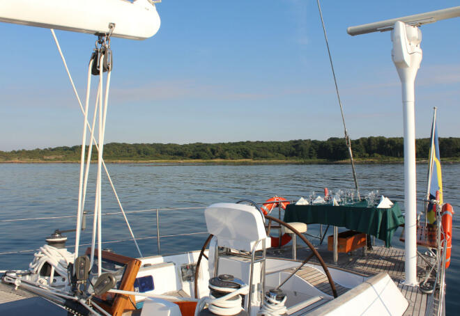 Däcket på S/Y Ichiban är designat för ett antal olika scenarios, hårt väder med vågor som slår över och kommer rullande över däcket, en skön undanvind i skärgårdens lugna vatten medan öar och kobbar glider förbi eller som matsal där trerättersmiddagar ska serveras i kvällssolen. Vid varje tillfälle känner du dig trygg ombord och du förstår varför SWAN båtarna är så välrenomerade.